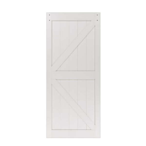 Our ready-to-assemble Easy-Build Stone Barn Door kit is a traditional K-design packaged in a conveniently sized box that fits in your car. The kit is easy to assemble and install kit generates an immediate impression creating definition between rooms, hallways and closets, or divides large open spaces into more comfortable, conversational areas. The modern, solid engineered wood construction DIY barn door is accented with Rustic Matte Black, bent strap hardware.