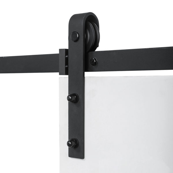 All Installation Hardware Included for drywall or concrete installations: bent straps, handle, wall spacers, anti-jump blocks, track end stops, floor guide, wall-mounted guide, floor-mounted guide, track mounting screws, concrete bolts and anchors