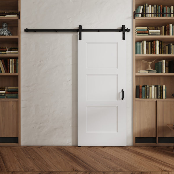 The classic barn door is elevated with a stunning 3-lite design, prefinished in white or paintable to compliment your room. Crafted with a hollow core for a lighter weight, this door is easier to handle and install without compromising on style. Our Quick-Hang hardware system ensures an easy setup, combining convenience with modern elegance. The true differentiator in this classic design barn door is the soft open/close which eliminates banging while keeping the door in the open or closed position.