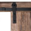 Traditional barn door track system with concealed floor guide allows the door to travel smoothly while keeping your opening clear, hazard free and easy to clean