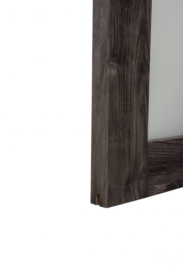 Choose from Bright White with a textured wood grain painted look, Espresso smooth wood grain look or Iron Age smooth wood grain look. All three options come with the look of 3 tempered frosted glass inserts