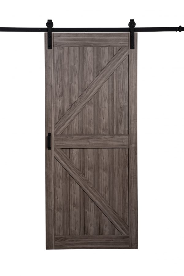 Our Stone Barn Door handsomely combines a traditional K-design brace with modern, solid engineered wood construction. Accented with Rustic Matte Black, bent strap barn door hardware kit, the door’s trackless design keeps your floor openings clear and hazard-free. Or, choose our optional Easy Glide Soft Close mechanism for smooth closing and opening action for an even quieter operation. A space-saving solution to swinging doors, these barn doors fashionably cover closets, cupboards and bathrooms, or divide large, open areas into create cozy, private spaces.